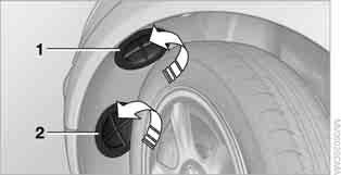 5watt bulb, W5W 1. Turn in the wheel. 2. Remove cover 2.
