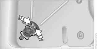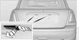 1. Fold up the wiper arm. 2. Rotate the wiper blade toward the back as far as it will go, arrow. 3. Press the wiper blade against the limit and thus out of the mounting. 4. Press the new wiper blade into the fixture until it engages audibly.