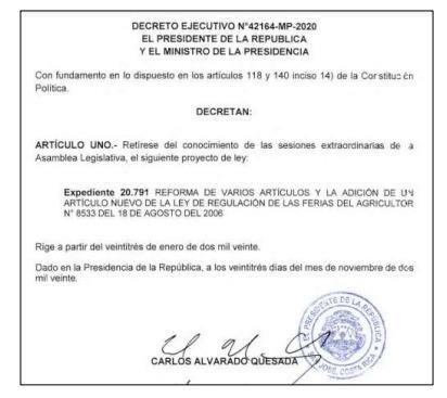 Es un documento donde se hacen constar las resoluciones del presidente de la república o del poder legislativo sobre materia de gobierno