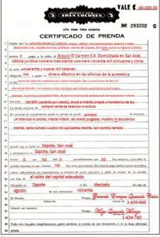 2.11.1 Ejemplo de formato de Certificado de Prenda