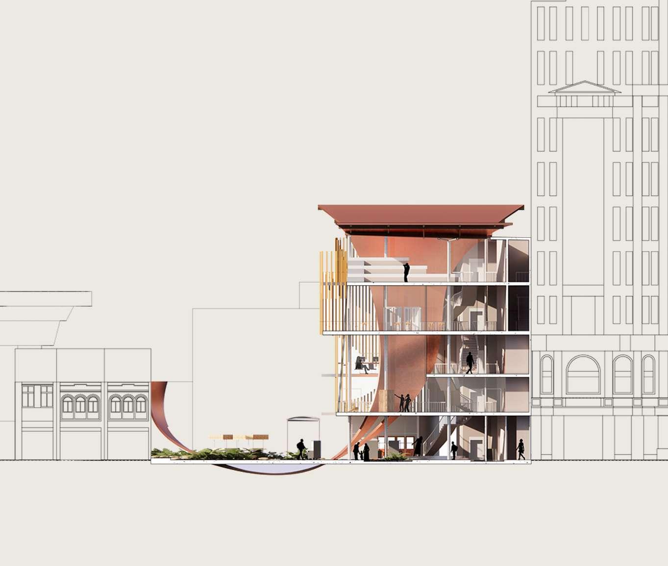 4 Creatingapeople-centredandactivity-drivendesign. Bothexternalandinternalspacesencouragesocialinteractionwithuniquejourneys andexperiencesthroughoutthebuildingforthepublic