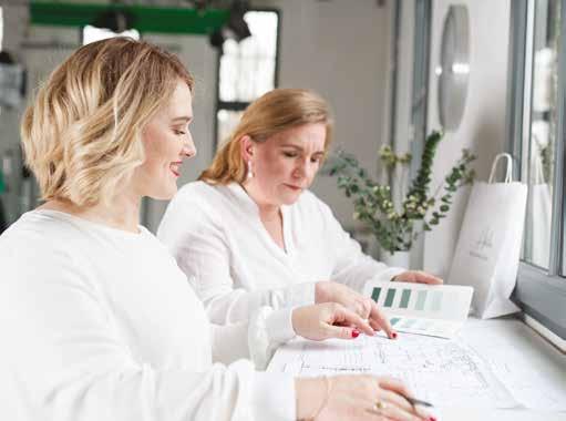 unterschiedlichen Projekten in ihrem gemeinsamen Atelier für schöne Räume in der Klosterbachstraße 21 in der KTV. „Ulrike hat bei IKEA für das Auslandsteam gearbeitet und die IKEA Häuser geplant und eingerichtet. Als ihre Abteilung geschlossen wurde, ist sie wie ich bei einem Existenzgründerkurs von ‚Frauen in die Wirtschaft‘ gewesen. Wir waren nicht in demselben Kurs, aber wir wurden vernetzt. Lustigerweise kannten wir uns schon flüchtig von der Kita unserer Kinder.“ Zudem planen sie gemeinsame Workshops, die zweimal im Jahr bei ihnen vor Ort stattfinden. „Man bringt sein eigenes Projekt mit wie zum Beispiel die Wohnzimmer oder Schlafzimmer und wir schauen gemeinsam, wie wir den Ort positiv verändern können.“ Am Ende des Workshops steht ein fertiges Moodboard mit dem man teure Fehlkäufe vermeidet.