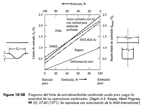 Dependiendo del tipo de material, del espesor del mismo, existe un límite en el diámetro a embutir, entendiendo que es necesario en la mayoría de los casos, realizar variasoperacionesdeestampación,seguidasdeunaseriedetratamientostérmicoscon lafinalidaddeconseguireldiámetroyalturaadecuada