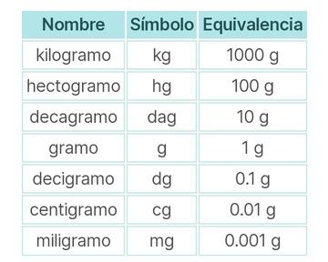El peso es una unidad de medida, por lo cual medir es comparar. La unidad principal que se utiliza para medir la masa o peso de cualquier objeto es el gramo. La masa tambien tiene sus múltiplos y submúltiplos.