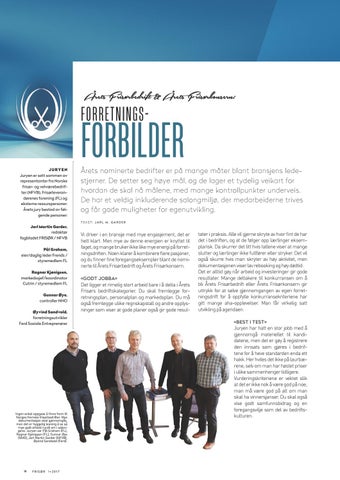 FORRETNINGSJURYEN Juryen er satt sammen av representanter fra Norske frisør- og velværebedrifter (NFVB), Frisørleverandørenes forening (FL) og eksterne ressurspersoner. Årets jury bestod av følgende personer: Jarl Martin Garder, redaktør fagbladet FRISØR / NFVB Pål Graham, eier/daglig leder Frends / styremedlem FL Ragnar Kjønigsen, markedssjef/koordinator Cutrin / styremedlem FL Gunnar Øye, controller NHO Øyvind Sandvold, forretningsutvikler Ferd Sosiale Entreprenører