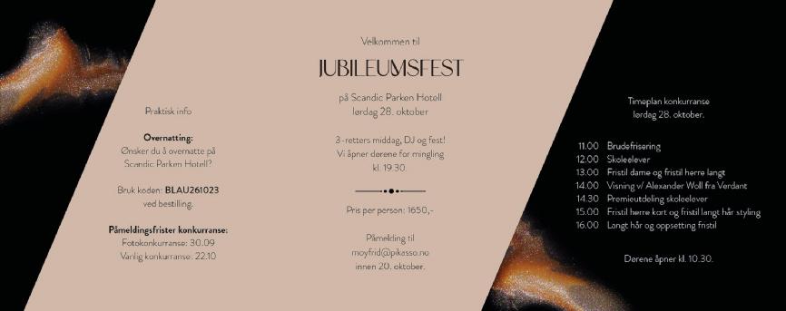 REDAKTØRENS LILLE innspill... MESSER, KONKURRANSER OG KONFERANSER Er du Norges beste frisør? Bli med på NM i frisering 2024! 9. MARS 2024 - NOVA SPEKTRUM, LILLESTRØM Mer info kommer på nfvb.no
