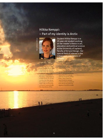 North, in particular to young adults, as a way to increase people’s interest in the social sustainability of the North. – Currently I’m studying at the University of Lapland and at the same time I’m involved with the University of the Arctic. Here I have the opportunity to conduct multidisciplinary research that utilises my previous degree in tourism as well.