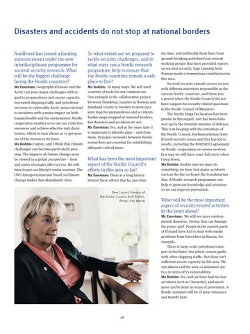 Ms Bohlin: In many ways. We will need a variety of tools for our common use. One example is the collaborative project between Trøndelag counties in Norway and Jämtland county in Sweden to draw up a joint map for preparedness and accidents. Earlier maps stopped at national borders, but disasters and accidents do not. Mr Enestam: Yes, and at the same time it is important to identify gaps – and close them. Dynamic networks between Nordic researchers are essential for establishing adequate critical mass.