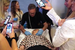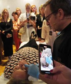 I tillegg til foredrag på hovedscenen, ble det arrangert live-workshops i et tilstøtende lokale i Hotel Bristol. Det hele fungere smart, og deltakerne viste stort engasjement på work-shopene, der det var anledning til å følge med på behandlingene og også prøve ut egne ferdigheter. Den etterfølgende dagen var det duket for spesialiserte injeksjonskurs i regi av Teoxane Academy.