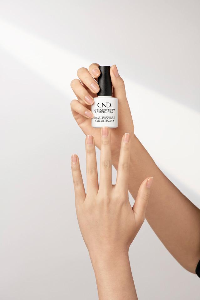 Styrkende og skånsom CND Strengthener RXx er en behandling som jevner ut riller og styrker svake og skadde naturlige negler.