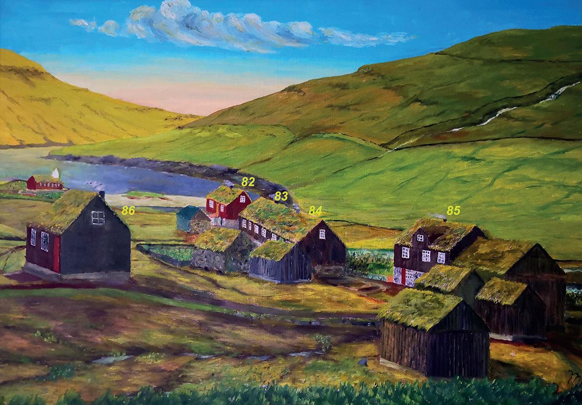 Hús 85 vóru tey, har løgmanshúskið búði. Kollfjarðar-Jógvan bygdi á gomlu løgmansgrundina (grundin nakað flutt). Hann keypti lut nr. 6 og 8 av løgmansjørðini og keypti grundina/matrikulin á uppboði beint eftir. Myndaeigari: Umhvørvisstovan.