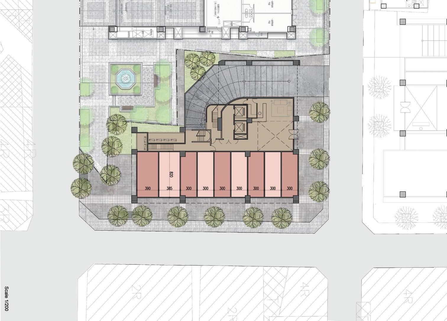 並且整體建材選用上,考量到整體氣候環境因素,將耐候性與易清潔性為原則。