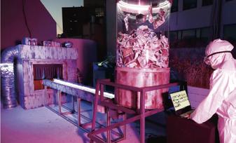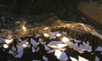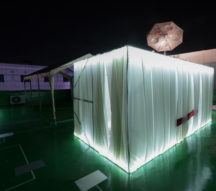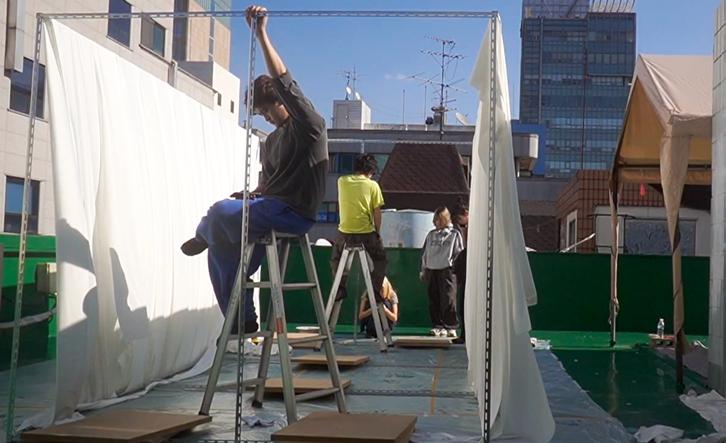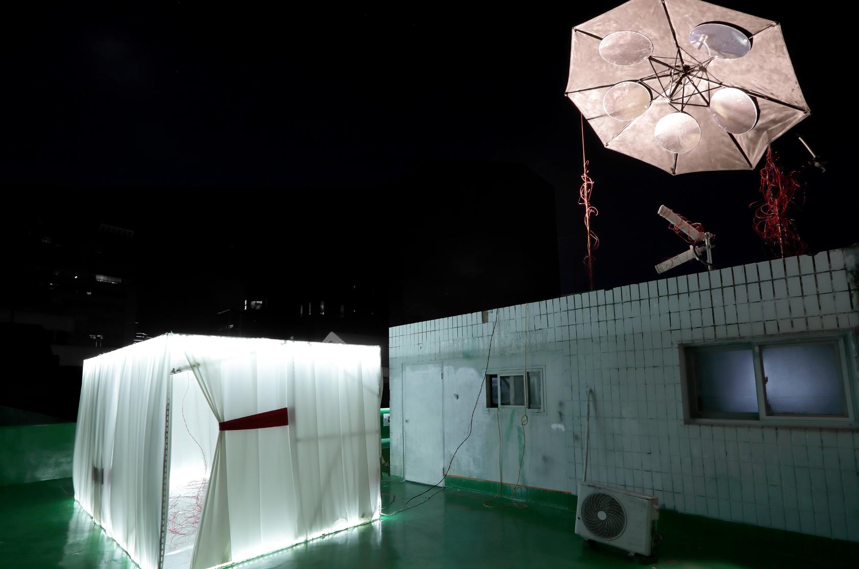 The rustling sound of “Hanji,” which is traditional Korean paper swaying in the wind, combined with recorded sounds of the city played through speakers, evokes the emotional turbulence and anxiety that people living in an urban society often experience. Over the four-day exhibition, the Hanji gradually crumpled in the wind, representing the accumulation of stress among Seoul’s residents.