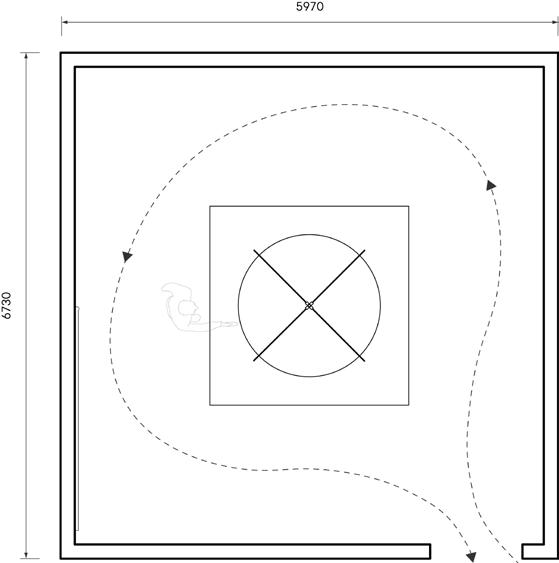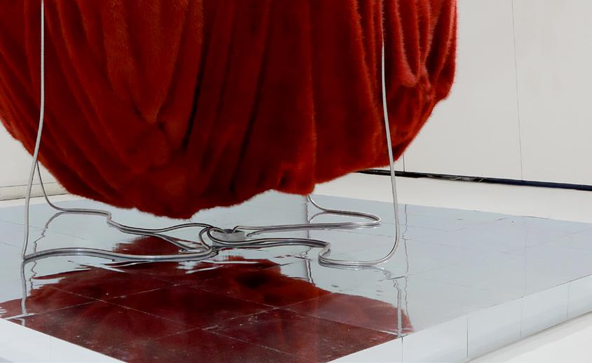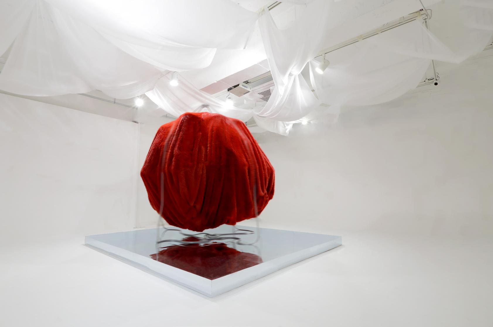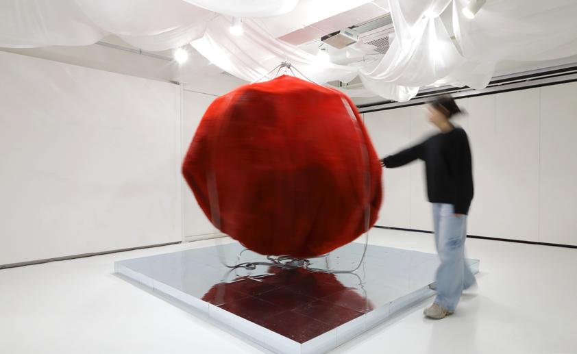 한 작품입니다. 공간의 중심에는 완전하지 않은 붉은 구가 놓여 있