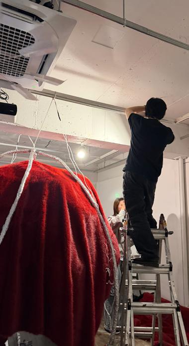 The thin fabric covering the space softens boundaries, suggesting that essence cannot be fully defined by logic but is instead a sensory experience. The work ultimately visualizes the contradictory feeling of being “the same me” despite constant change.