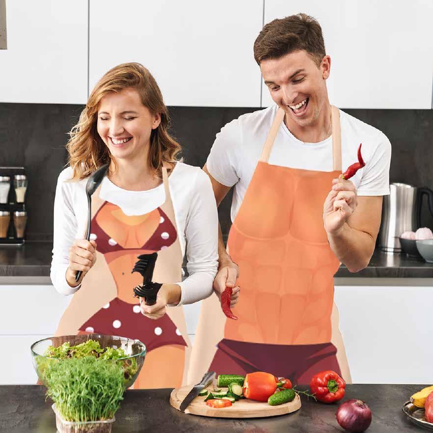 Loved cooking? Have a feast with love in these cute aprons you two can match.