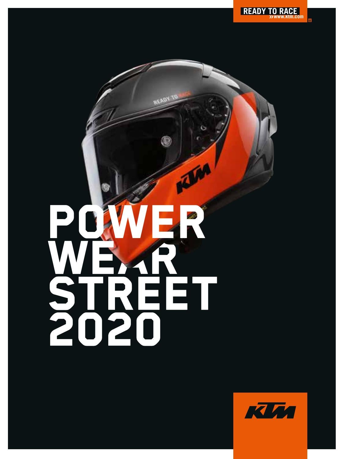 Die KTM PowerWear-Kollektion ist bei jedem autorisierten KTM-Händler erhältlich. Die KTM Sportmotorcycle GmbH behält sich das Recht vor, ohne vorherige Ankündigung und ohne Angabe von Gründen, technische Spezifikationen, Ausrüstung, Lieferumfang, Farben, Materialien, Dienstleistungsangebote, Serviceleistungen und ähnliches zu ändern bzw. ersatzlos zu streichen oder die Fertigung eines bestimmten Modells einzustellen. Alle Angaben werden unverbindlich und unter dem Vorbehalt von Irrtümern, Druck-, Satz- und Tippfehlern gemacht; diesbezügliche Änderungen bleiben jederzeit vorbehalten. Bitte holen Sie sich vor Bestellung bzw. Kauf eines der angebotenen Produkte oder Modelle bei Ihrem örtlichen KTM-Händler Informationen zum jeweils aktuellen Ausstattungs- und Lieferumfang ein. WARNUNG Nicht zur Nachahmung geeignet! Bei den abgebildeten Fahrern handelt es sich um professionelle Motorradfahrer. Die Bilder sind auf abgeschlossenen Rennstrecken oder abgesperrten Straßen entstanden. KTM macht alle Motorradfahrer darauf aufmerksam, die vorgeschriebene Schutzbekleidung zu tragen und verantwortungsbewusst sowie im Einklang mit den relevanten und anwendbaren Bestimmungen der Straßenverkehrsordnung zu fahren.