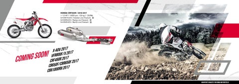 HONDA CRF250R / 2016-2017 + 1.5 HP / 11600 rpm, - 0.9 kg ( - 20.0%) S-H2MET9-QTA / Evolution Line (Titanium) SA S-H2MR9-QTA / Racing Line (Titanium) SA S-H2SO5-QTA / Slip-On Line (Titanium) SA