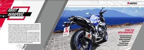 STAND OUT WITH AKRAPOVIČ Increased performance Advanced technology Quality workmanship Unique sound Innovative design Improved durability