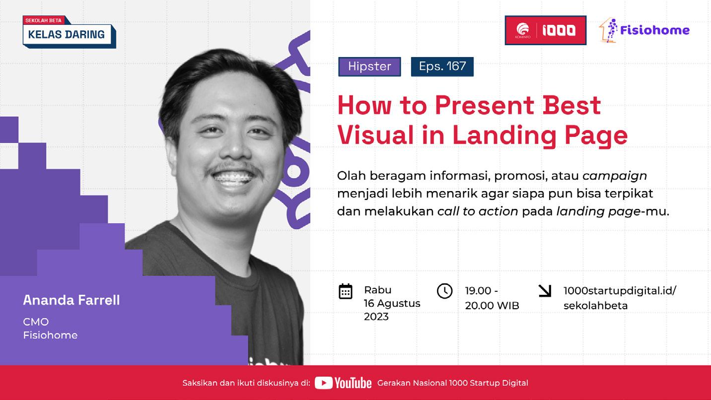 Pada materi Sekolah Beta kali ini menghadirkan Ananda Farrell , ia merupakan Chief Marketing Officer, Fisiohome yang membagikan ilmunya seputar cara mengelola informasi dan menghadirkan sebuah tampilan landing page yang tak hanya menarik tapi juga bisa menyampaikan pesan ke user dengan baik.
