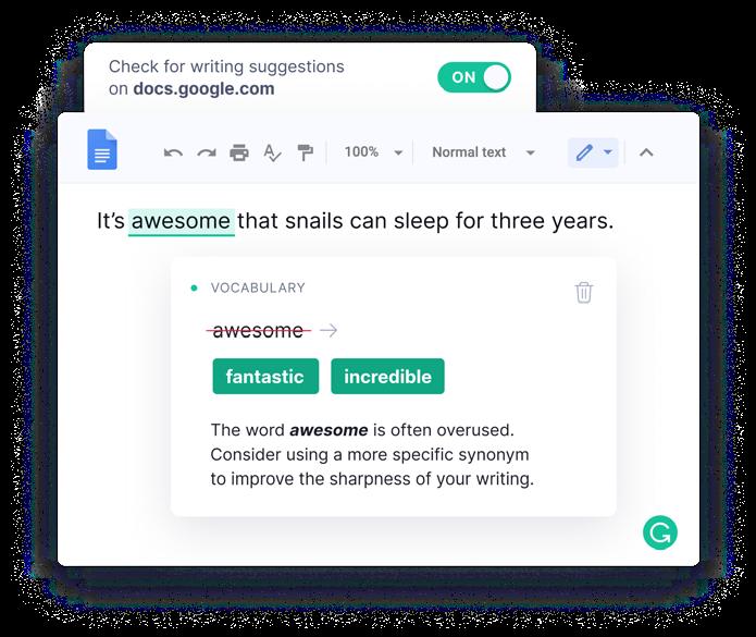bahasa Inggris yang didukung A, Grammarly tersedia sebagai aplikasi desktop dan ekstensi browser. Startup asal California yang berdiri tahun 2009 ini telah diandalkan lebih dari 30 ribu tim profesional dan sekitar 30 juta orang setiap harinya. Grammarly memiliki beberapa fitur, antara lain Grammar Checker, Plagiarism Checker, Essay Checker, Tone Detector, dan Style Guide.