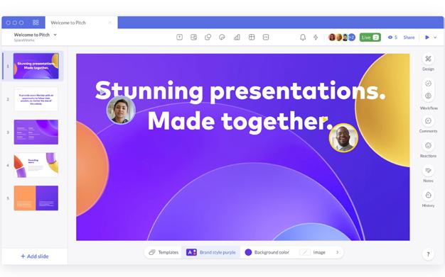 Pitch deck jadi salah satu alat tempur startup dalam pencarian investor. Pitch merupakan platform yang akan membantu kamu membuat deck secara terstruktur dan mampu memikat secara visual. Tak hanya kamu seorang, anggota tim kamu juga bisa berkolaborasi dan berkomunikasi secara langsung ketika menyusun deck. Startup yang terbentuk tahun 2018 ini menyediakan beragam template profesional dengan berbagai tipe & style serta terintegrasi dengan aplikasi lain yang menunjang proses kerja tim kamu. HTTPS://