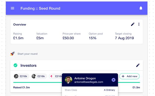 Diluncurkan tahun 2016, Seed legals terbentuk karena berangkat dari permasalahan startup harus membayar pengacara untuk dokumen hukum yang sama selama berbulan-bulan setiap akan memulai putaran pendanaan. Seed legals mengotomatiskan urusan legal yang startupmu butuhkan untuk mendapatkan dana dan mengembangkan bisnis. Platform ini menawarkan beberapa fitur, mulai dari pembuatan kontrak, pitch page, EMI scheme, SEIS/EIS assurance, mengelola capitalization table, dan masih banyak lagi.
