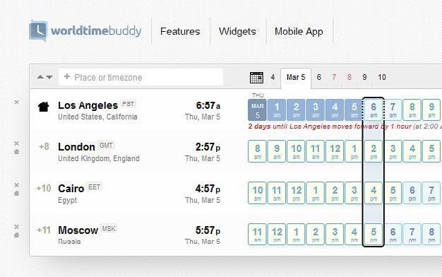 Tim yang tersebar secara geografis sering mengalami kesulitan untuk menjadwalkan meeting yang cocok untuk semua orang. Perbedaan waktu yang sangat signifikan dan banyaknya jadwal meeting yang harus diatur tentu akan menghambat pekerjaan jika tidak didukung dengan tools. World Time Buddy hadir untuk menjawab permasalahan tersebut. Cukup dengan menambahkan lokasi rekan satu tim kamu dan temukan waktu yang tepat untuk meeting. Jika menggunakan versi gratisnya, kamu hanya bisa berkoordinasi dengan anggota tim di 4 lokasi. Tapi dengan biaya $60/tahun, kamu tidak memiliki batasan lokasi dan jumlah anggota.