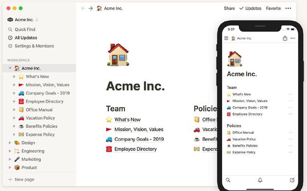 Terbentuk tahun 2016 di San Fransisco, Notion merupakan sebuah tools yang membantu manajemen bisnis, mulai dari mengelola projek, mengatur catatan, hingga melakukan pekerjaan secara kolaboratif. Ada banyak template perencanaan yang bisa dipakai oleh tim kerja di berbagai bidang. Dalam memudahkan proses bekerja, Notion juga terintegrasi dengan beberapa software pendukung seperti Typeform / Google Forms, Twitter, Google Drive, Figma, dan masih banyak lagi. HTTPS://WWW.NOTION.SO/