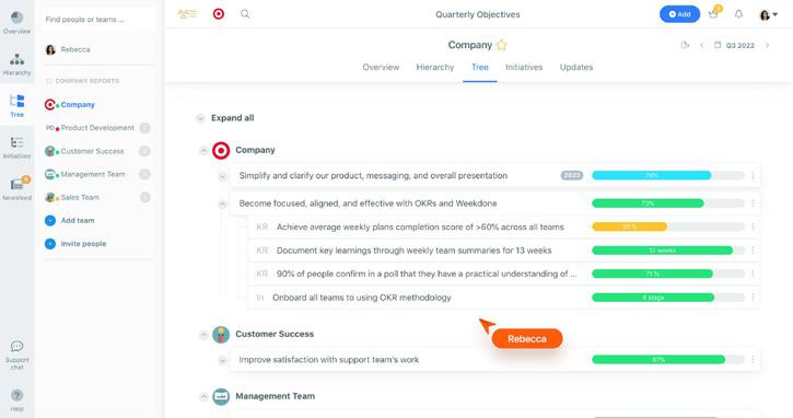 Weekdone adalah alat perencanaan untuk berbagai pekerjaan dan goals mingguan atau triwulanan. Berbagai fitur Weekdone memungkinkan pimpinan untuk mengatur fokus setiap anggota tim dan menjaganya agar selalu berada di jalur yang tepat dalam menyelesaikan pekerjaan dan mencapai tujuan bersama. Startup asal Estonia ini membantu perusahaanmu menetapkan OKR dan goals dengan lebih efisien lewat pengintegrasian setiap objektif projek yang telah diisi oleh anggota tim. Selain itu, Weekdone juga memberikan ruang untuk feedback , laporan status karyawan, hingga KPI tracking.