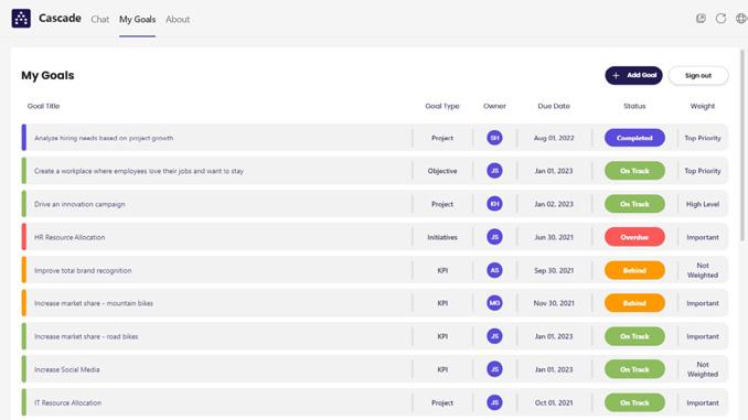 Ini merupakan platform yang membantumu mengeksekusi strategi, menyelaraskan semua ide serta action items, hingga bisa membuat visi dan tujuan akhir menjadi kenyataan. Cascade yang berbentuk rangkaian tools terintegrasi mampu membuat peta strategi berupa diagram atau framework lain untuk mendokumentasikan tujuan bisnis strategis. Startup asal Portland, Oregon, US yang terbentuk tahun 2014 ini memiliki enam fitur andalan yang berfungsi untuk menyusun rencana awal, membuat goal deck , menentukan KPI dan OKR, memantau tiap pekerjaan, hingga menyimpulkan keputusan yang harus diambil berdasarkan data dan laporan akhir.