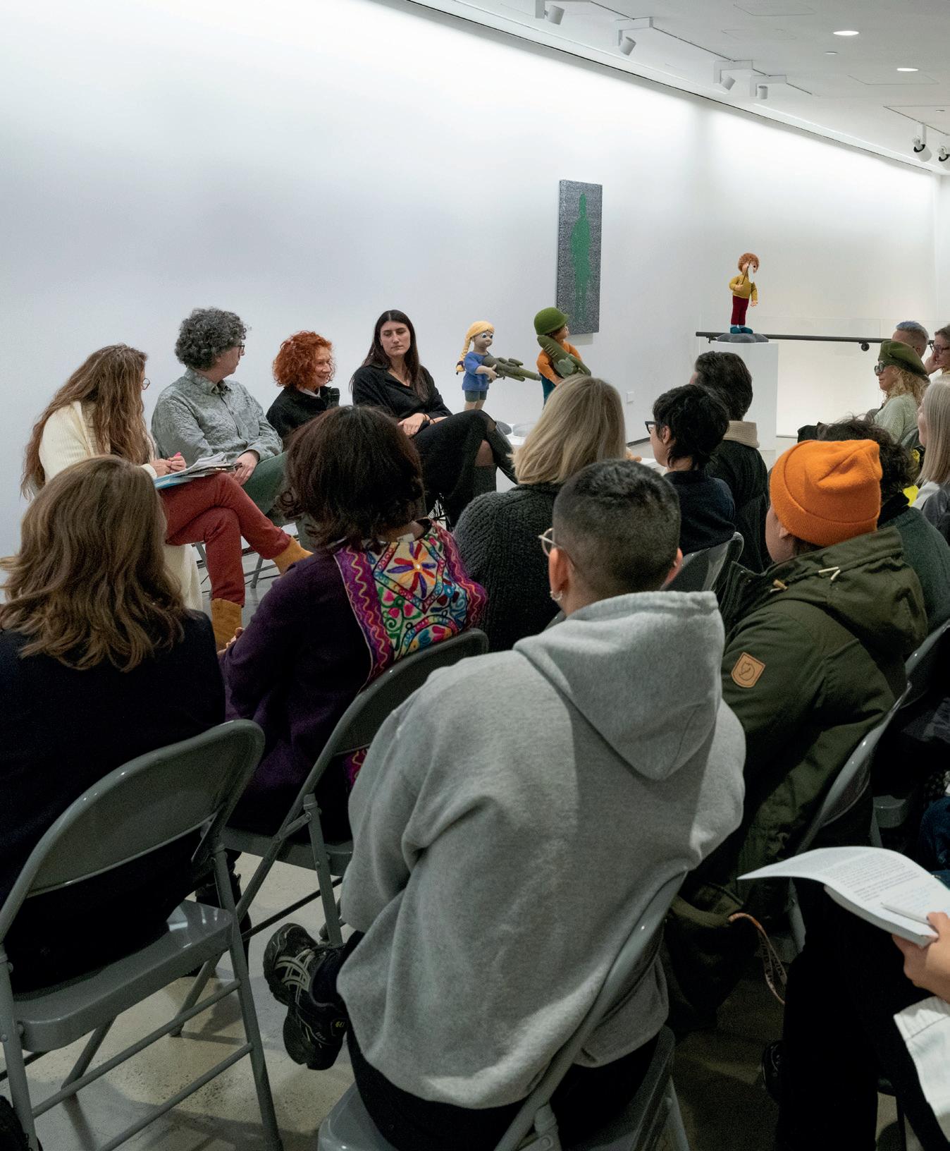 January 15, 2025: Child’s Play: An Investigation of Violence, Desires, and Taboos Through Art considered how acts of violence are woven into the fabric of modern culture, with a focus on the works of Berlin-based crochet artist Patricia Waller. The conversation between artist Patricia Waller, Hrag Vartanian, Editor-inchief and co-founder of Hyperallergic; Ariane Lignier, Communications Officer for the UN’s Office of the Special Representative for Children and Armed Conflict; and Sharon Louden, advocate, community builder and Executive Director of Women’s Studio Workshop, shed light on the use of unconventional methods to address difficult topics like violence, as well as the role of art as an instrument for political awareness.