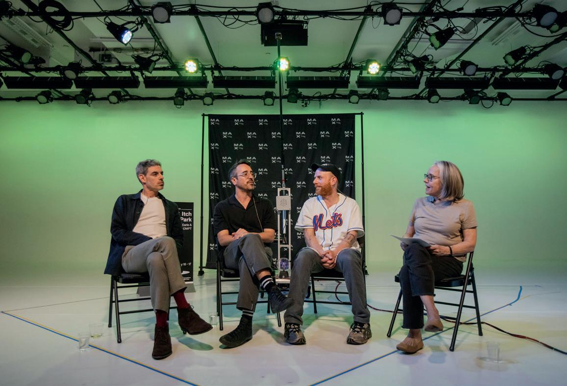 May 17, 2025: Creative technologists Grayson Earle and Johannes Büttner of PROMPT, accompanied by their AI collaborator, and Tal Linzen, Associate Professor of Linguistics and Data Science at New York University and a research scientist at Google, discussed Jur A* Itch Park*, their AI-directed film set with audience participation. The trio offered insights, laughs, and a behind-the-scenes look at how AI and humans can create art together. Understanding the Brains (Human & Machine) behind Jur A** Itch Park with Grayson Earle & PROMPT, hosted at the Center for Performance in Brooklyn, was a part of the MAXforum’s Salon Series and moderated by Kay Matschullat, Artistic Director of MAXlive.