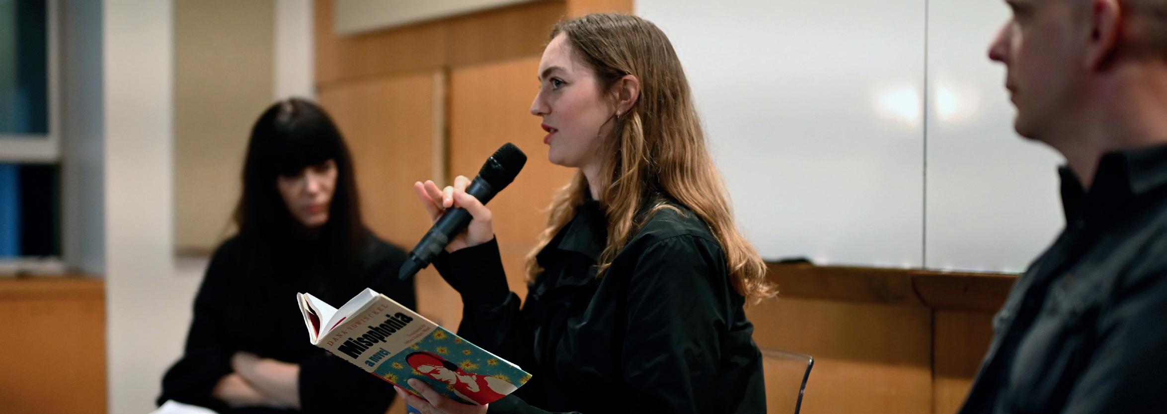 May 14, 2025: In “Misophonia”: An Evening with Dana Vowinckel, Adrian Nathan West, and Martina Wunderer, author Dana Vowinckel, translator Adrian Nathan West, and the editor of “Misophonia” in Germany (Gewässer im Ziplock, Suhrkamp Verlag), Martina Wunderer joined 1014 and Deutsches Haus at NYU for a conversation about the search for cultural identity.