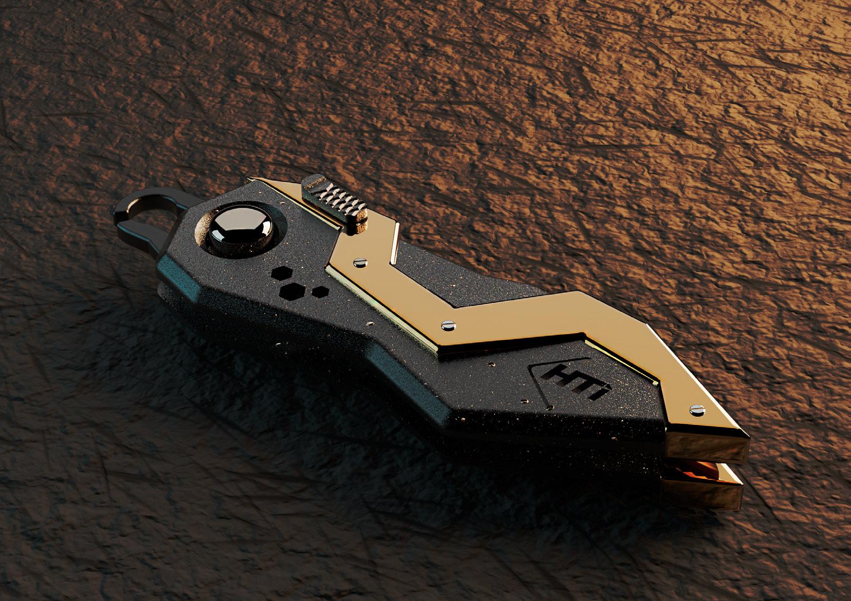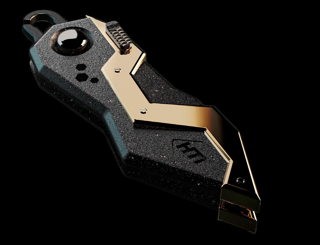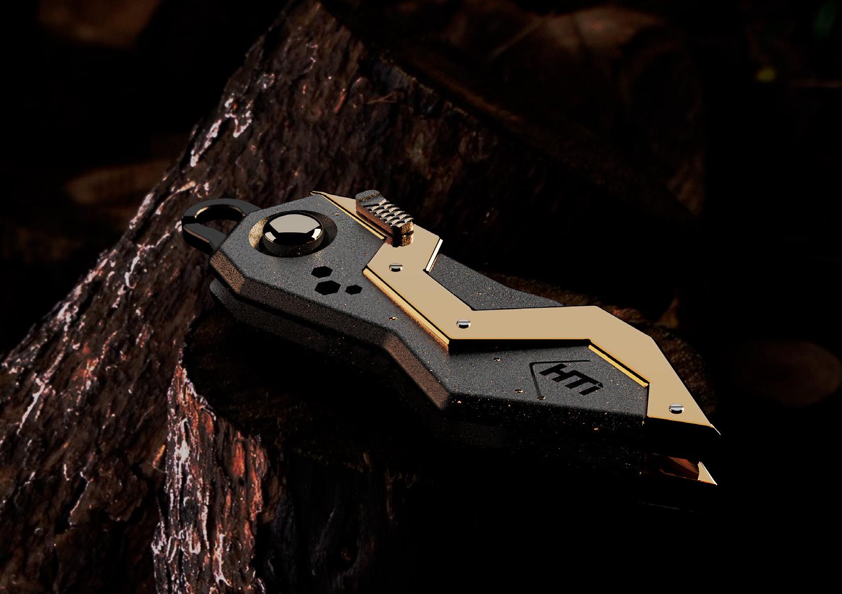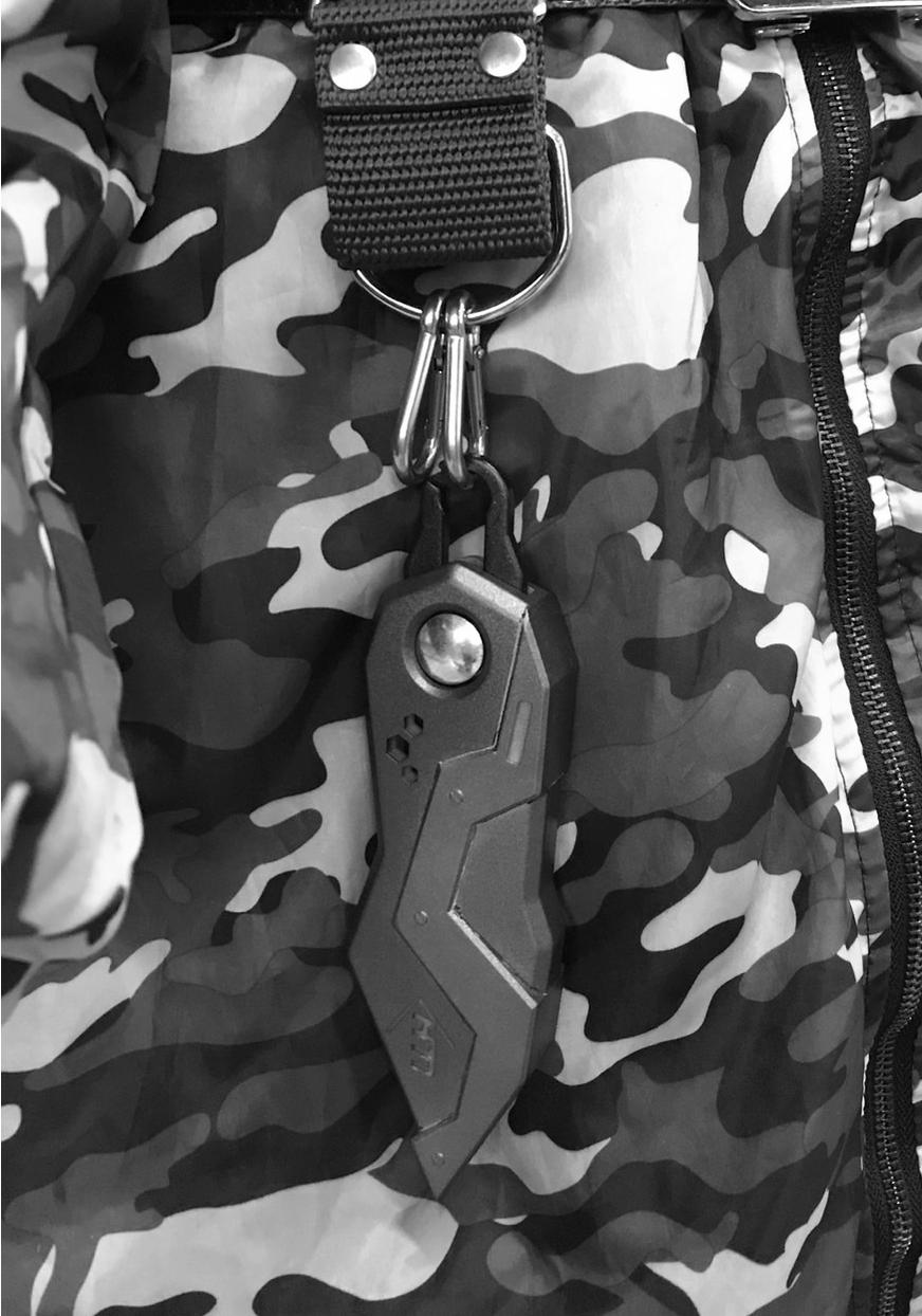 Slide the slider to stow the blade, and a rear protruding hook allows the user to hang it around the waist
