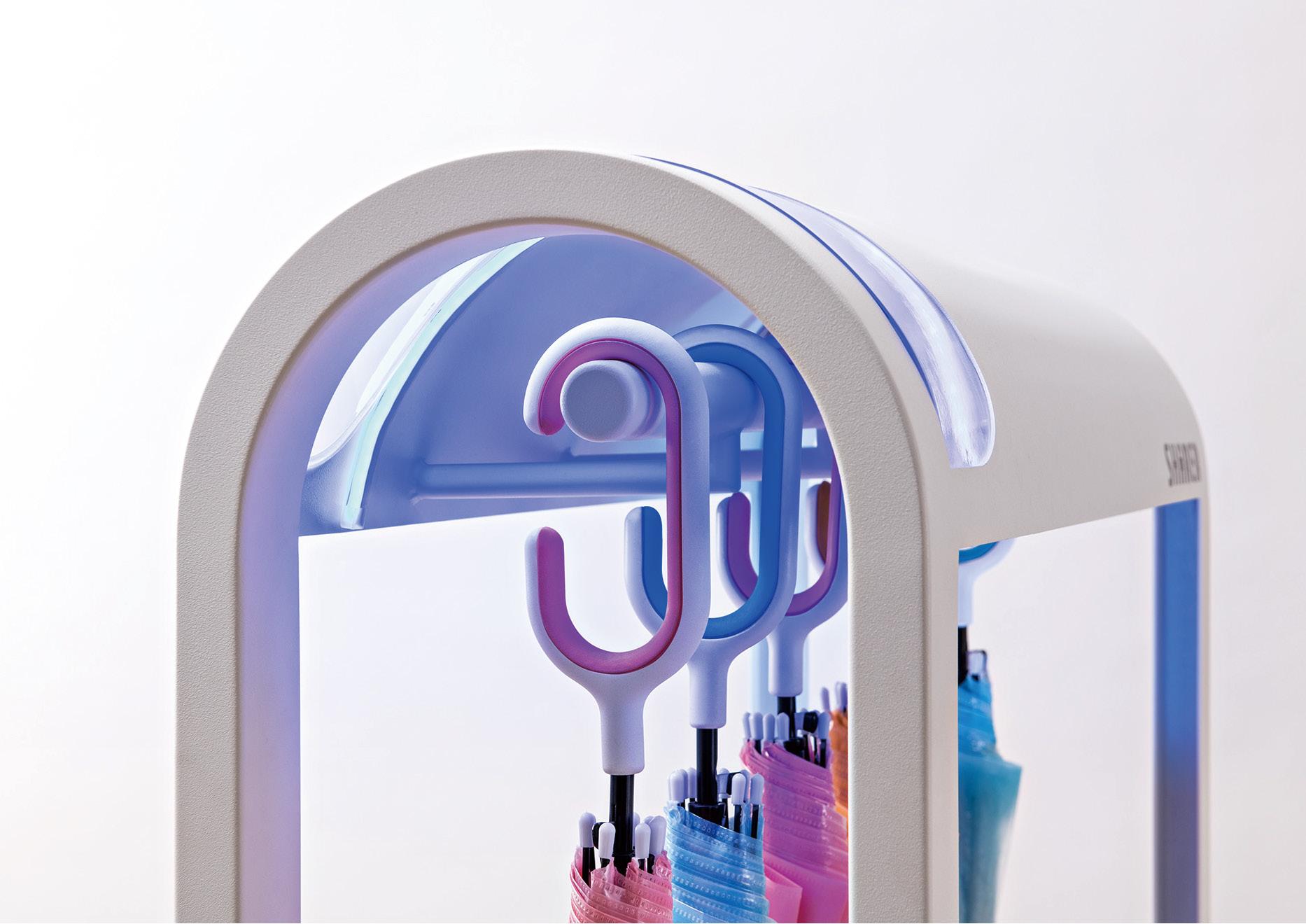 型,是款能透過紫外燈有效消毒的租借共享傘,在疫 情時期保障你我的衛生案全,作為一款有區域限制的 共享產品,還能有效增加回收率,減少塑膠垃圾隨意 棄放所帶來的外部成本。