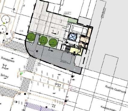 Verhouding beplante / niet-kunstmatige oppervlakken Volle grond: ~5 800 m² d.i. ~6,3 % van de perimeter van het BBP Boven de grond: ~3 400 m² d.i. ~3,7 % van de perimeter van het BBP