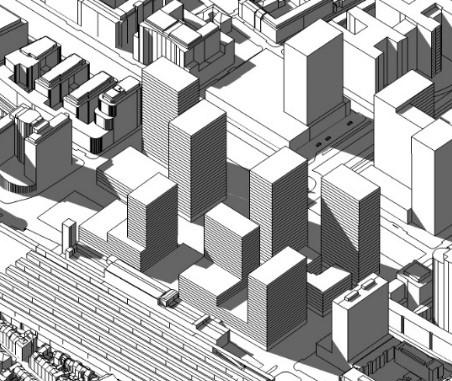 Max~ 400 000m² (buiten Noordstation) SV Landschap, microklimaat Maximumhoogte in huizenblok 72 (CCN)