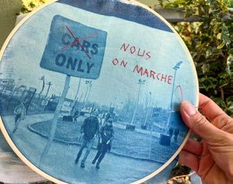 D’abord, on sort explorer la ville avec enregistreur, carnets, appareils photos pour cueillir la joie qui flotte dans l’air. Ensuite, on transforme l’expérience en images sensibles avec la technique du cyanotype, associée à la broderie. Le résultat de ces ateliers sera exposé à l’occasion de la Journée internationale des droits des femmes, le 8 mars.