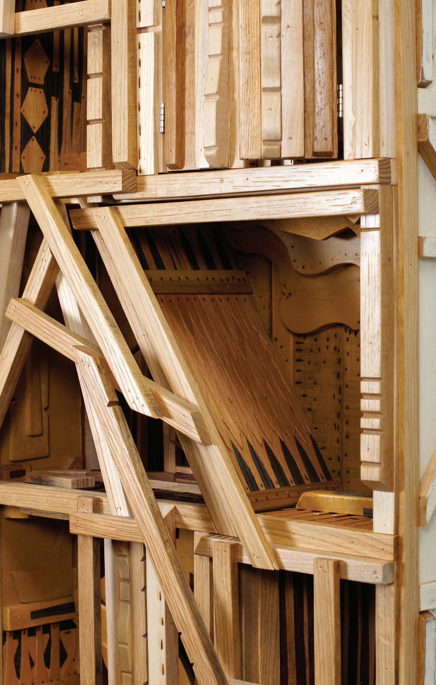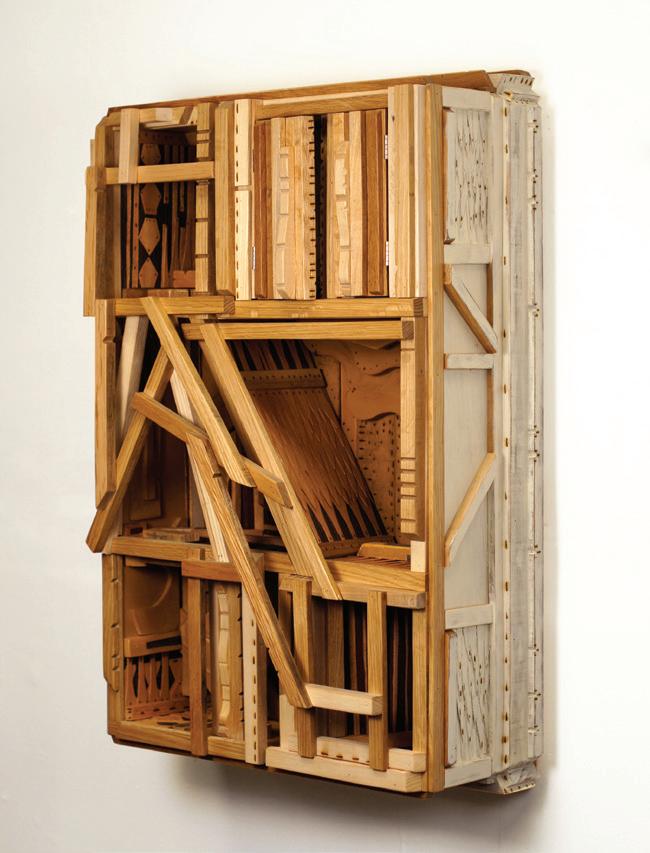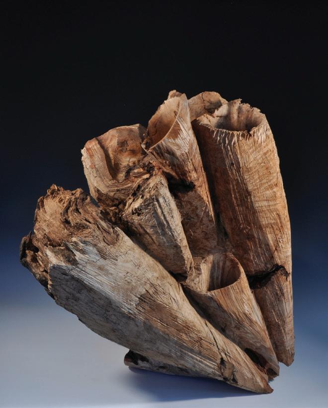The materials I choose – both natural elements and pieces that I collect from deteriorating built structures — attract me with their evidence of time passing. My use of wood is a form of recycling, crafting memento mori out of nature’s bones. In our ever-updating lifestyle that includes fewer quiet moments to enjoy nature and more hours stifled by technology, making and sharing this work is a respite for me, a space to breathe.