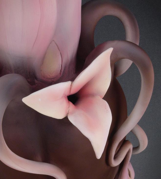 I work only in clay. I’m attracted to the alchemy of the medium. I’m interested in using glazes, luster in new ways. I like to limit my palette of materials to things within the ceramic practice. I explore color in glaze, luster and experiment with multiple techniques for building my work.