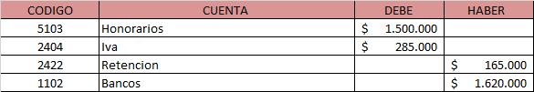 16. Cancela honorarios de Revisoría Fiscal a Contadores Asociados S.A., por $ 1.500.000 con cheque
