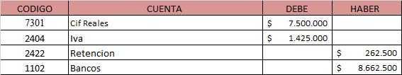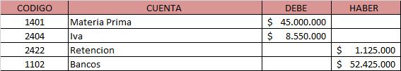 1. Compra Materiales a Carvajal S.A., por $45.000.000, cancela con transferencia electrónica.