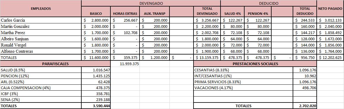 Carmenza Coronel (Gerente) $ 2.500.000.