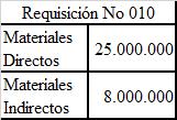 4. El departamento de producción devuelve a almacén materiales de la Requisición No 010 por valor de $2.000.000 de MD.