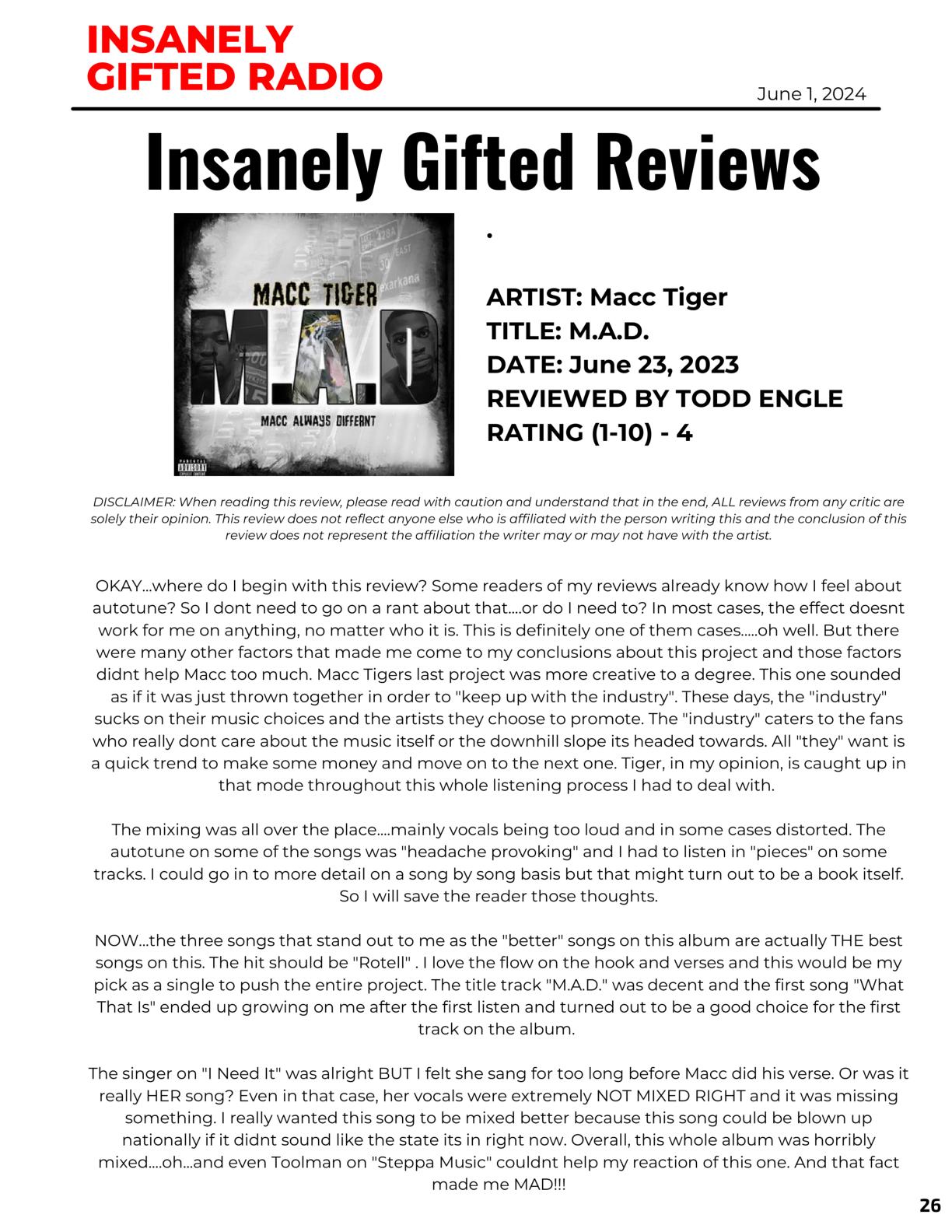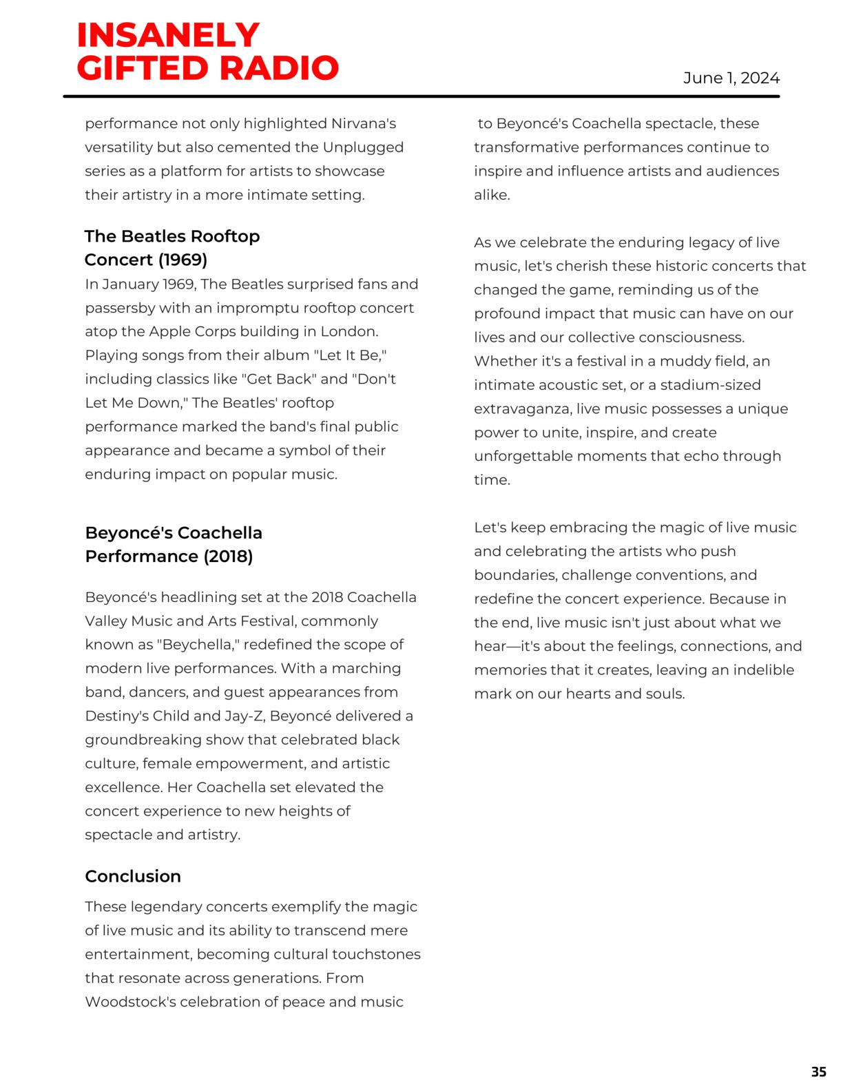 **Insanely Gifted Magazine** is your gateway to the vibrant world of undiscovered musical talent. Each issue features in-depth articles and exclusive interviews with emerging artists across all genres. Celebrate the diversity and creativity of the next wave of music with us, as we uncover and spotlight the future of sound.