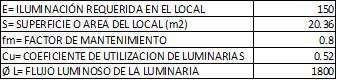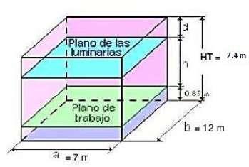 TECHO BLANCO =0.7 PAREDES CLARAS = 0.5 N ANCHO = 3.73 = A N LARGO = 4.75 = L L/2 L/2 A/2 LUXES REQUERIDO A/2 CÁLCULO DEL N° DE LUMINARIAS