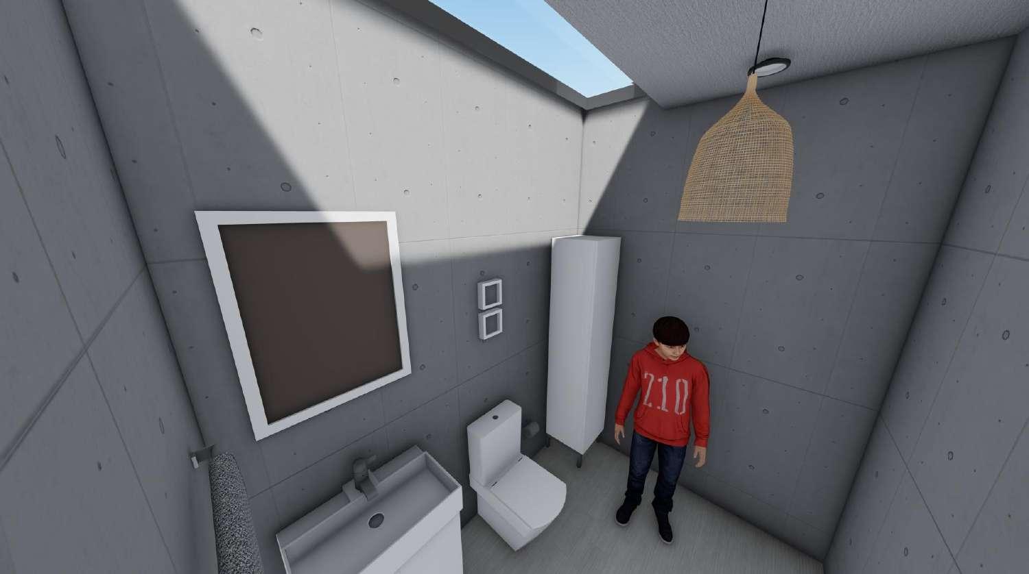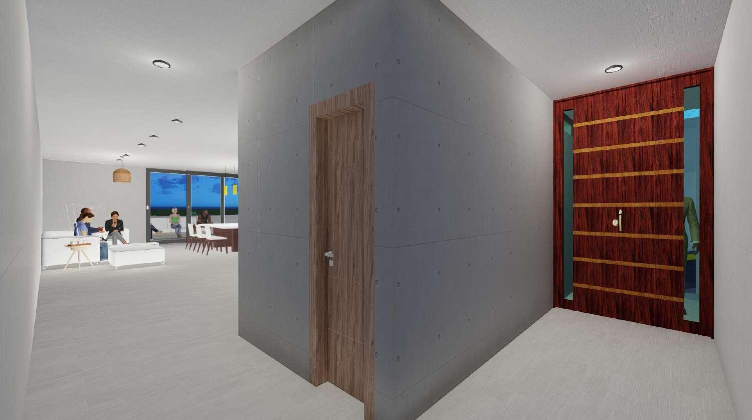 Debidoasulocalizaciónlaviviendareciberadiaciónsolar durante todoelaño,yaquenohayunavariaciónconsiderablemente,espor eso que en la fachada principal se ubicó un lugar de estancia y socialización como la terraza en donde se puede aprovechar esta luznaturaldeunamaneramáseficiente.