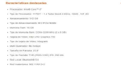 2022-II FICHAS TÉCNICAS Kit 6 Cámaras de Vigilancia Hikvision Full Hd 1080PKit de Micrófono PRECIO= s/969 PRECIO= s/3300 Lenovo IdeacentreAIO 5 24IOB6 Intel Core i7 11700T RAM 16GB DISCO 512 GB SSD 23.8″ FHD Trío Internet + TV + Teléfono fijo PRECIO= s/187
