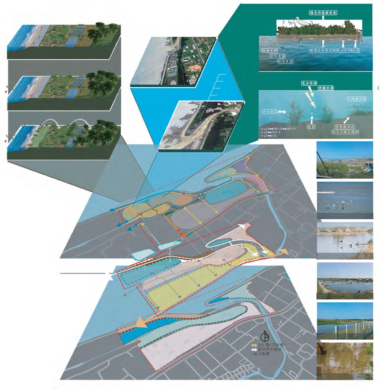 紅樹林/防風林埤塘防風林 綠帶串聯,復育區延續 教育空間 淨化補償區 林徑步道區田園景觀區